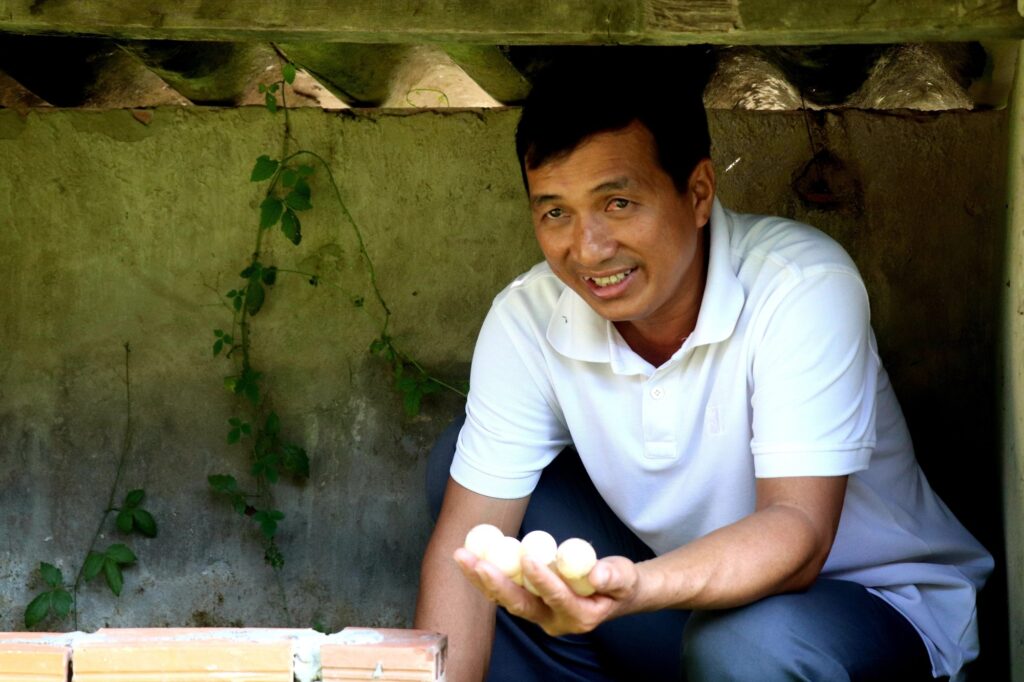 Nhờ kinh nghiệm nuôi ba ba trước đó, anh Quan thấy nuôi cua đinh dễ hơn, ít chi phí thức ăn nên anh Quan mạnh dạn gầy dựng thêm con giống để nuôi.