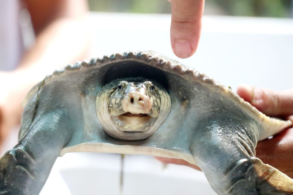Tuy nhiên, ba ba Nam Bộ có đặc điểm khác biệt là có 2 “chiếc đinh” hai bên đầu.